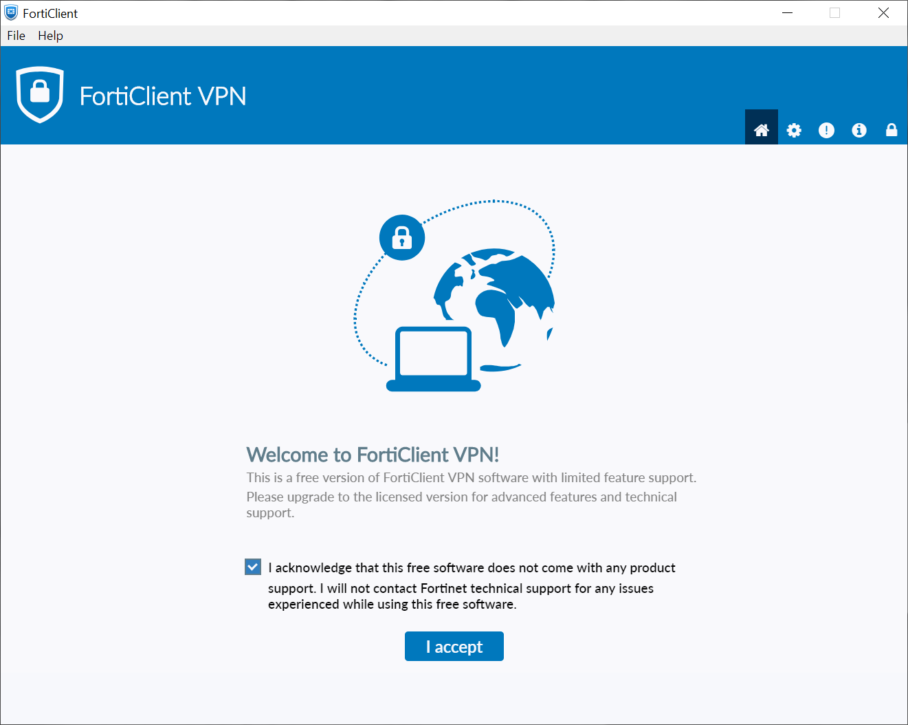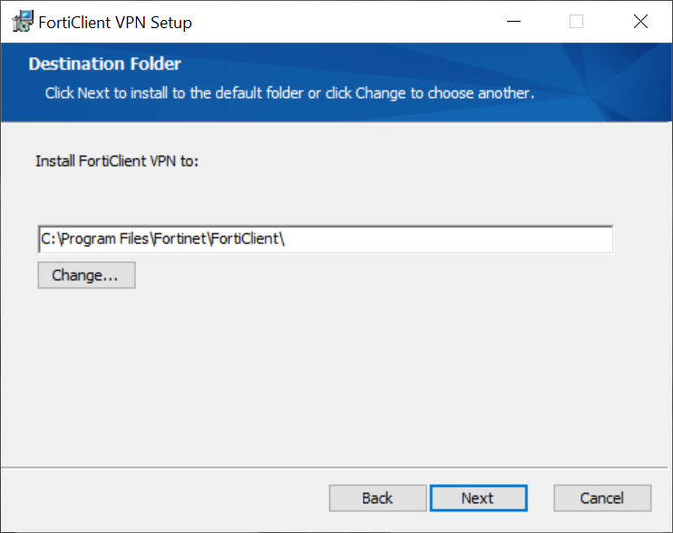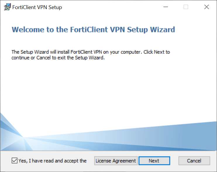 Install FortiClient VPN. If you do not have the client installed, download the latest installer for your Windows version from the official location.