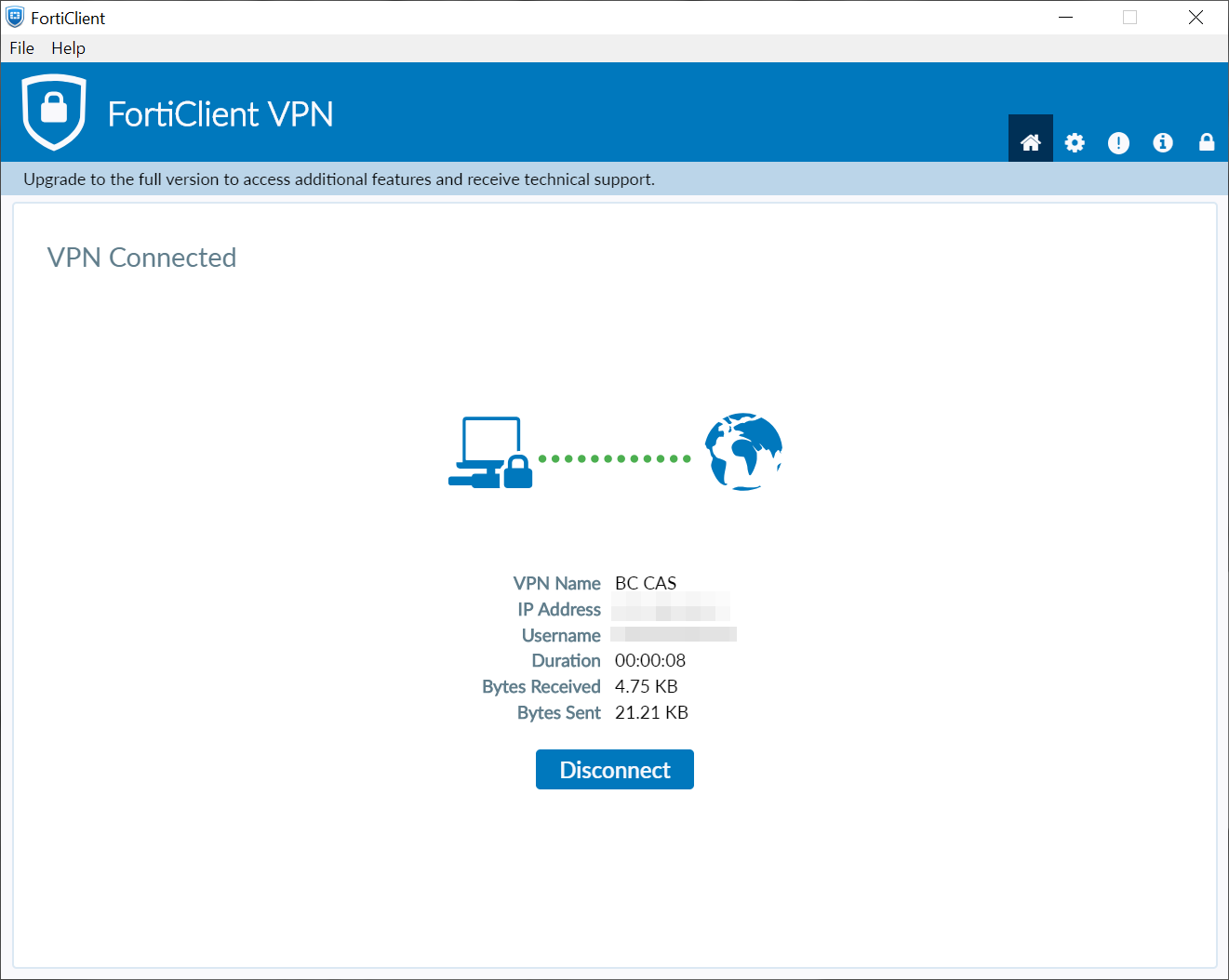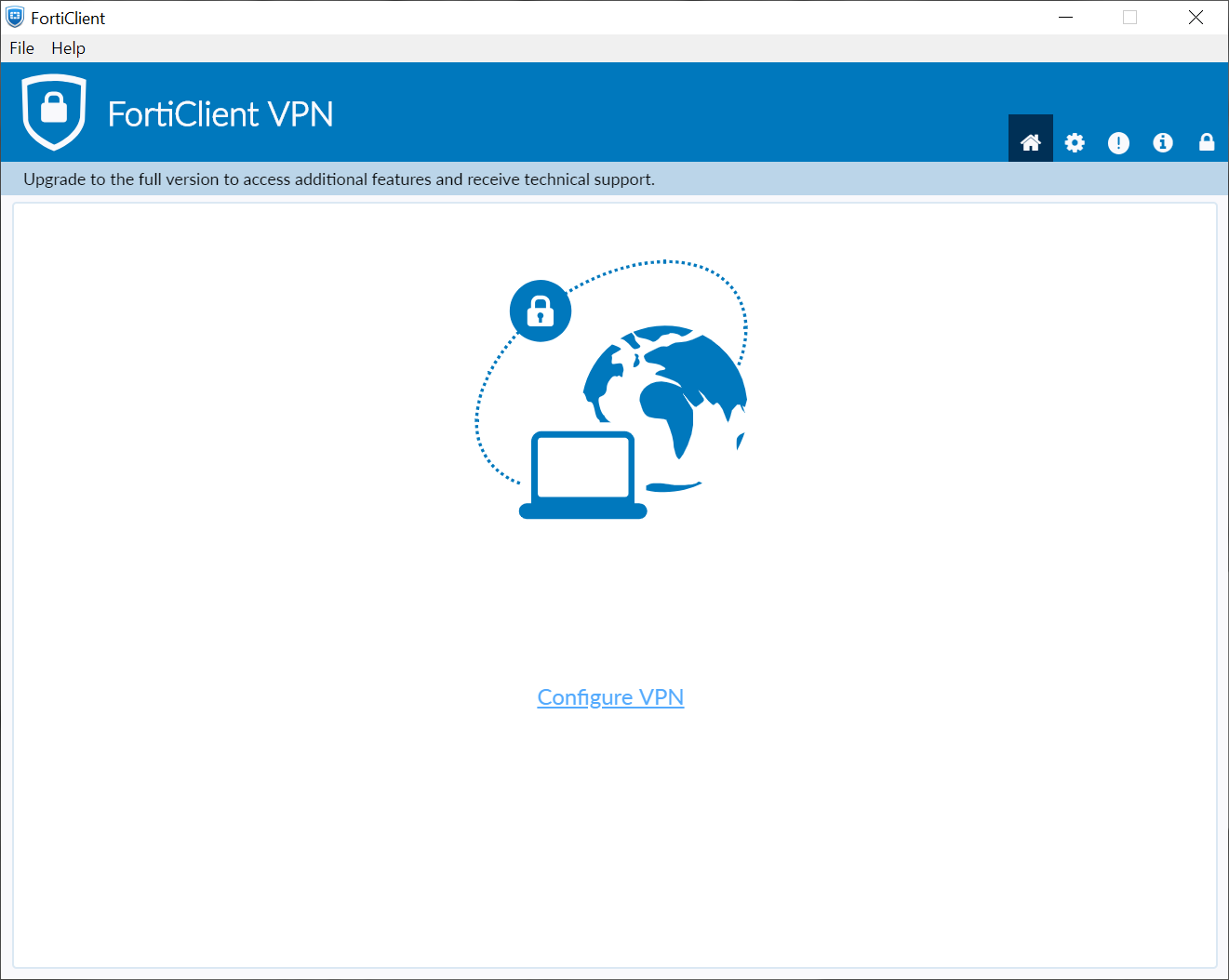 Launch the FortiClient VPN application by clicking it’s icon on your desktop.